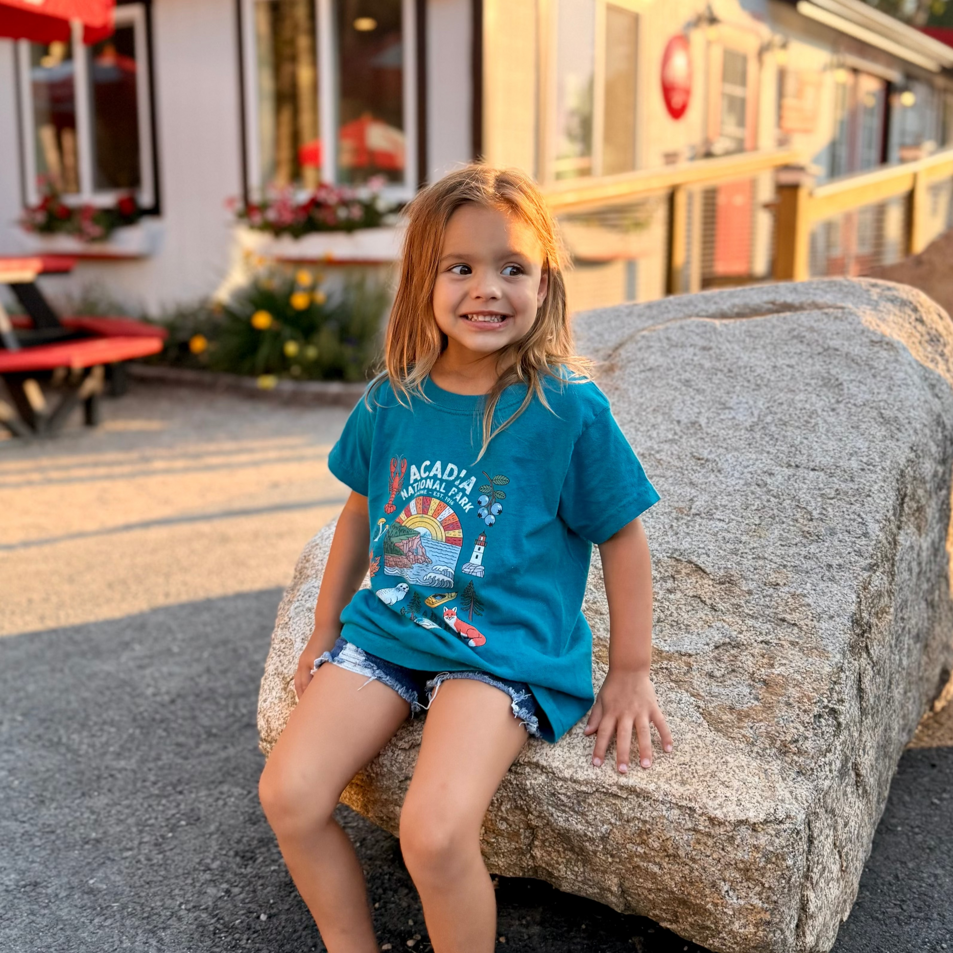 Meet the youth-sized version of our Acadia National Park and Friends Tee — made for little explorers who love big adventures. This super-soft tee features the same hand-drawn icons of Acadia’s wildlife and landmarks (hello, lobsters, lighthouses, and sunrise skies), all in vintage-style colors that capture the magic of Maine. Perfect for trail walks, tide pool hops, or tagging along on your next coastal escape.