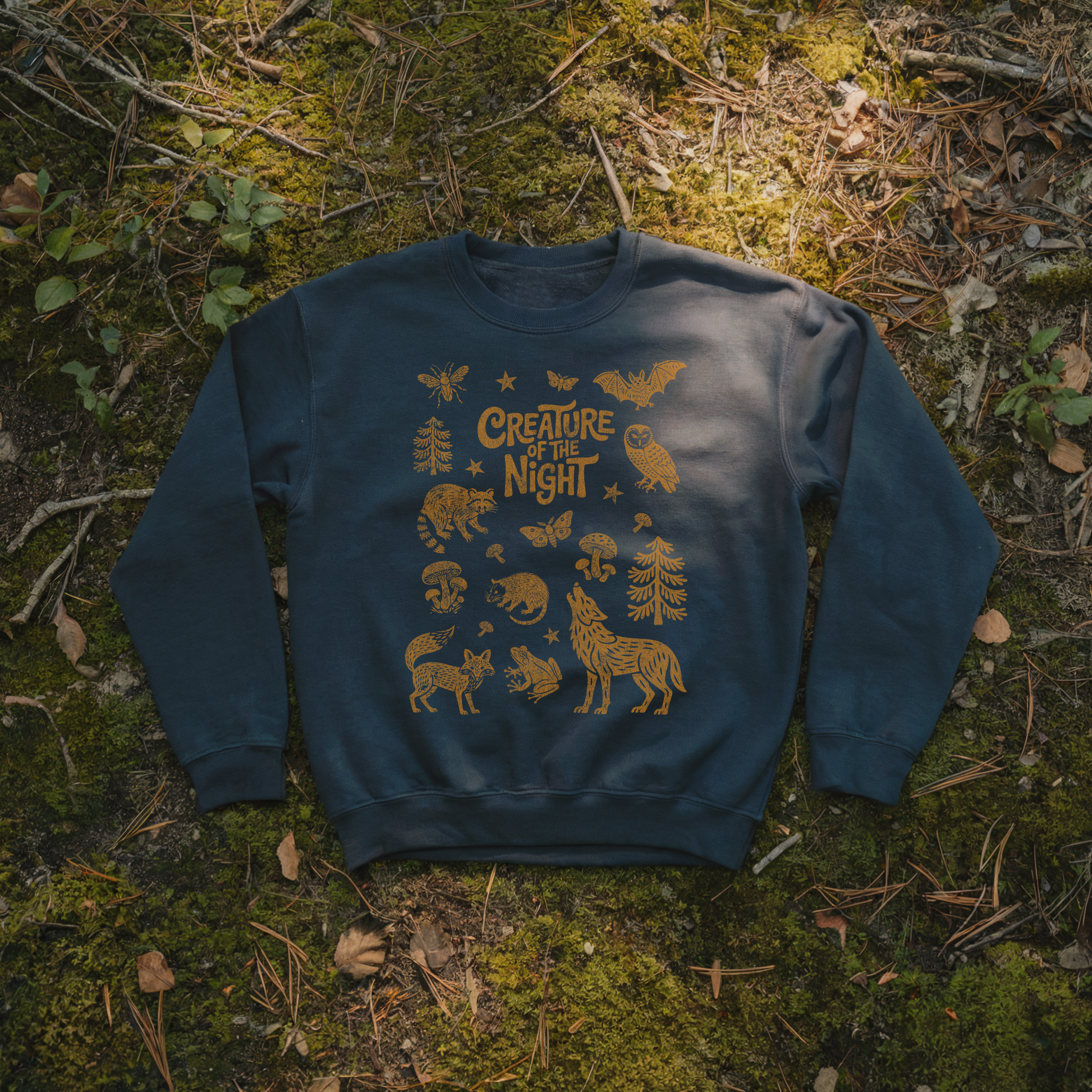 Step into spooky season in style with our Creature of the Night Crewneck. Made for cozy nights and crisp adventures, this limited-edition design brings nocturnal wildlife to life in a bold autumn mustard print. Soft, warm, and built to last — grab yours before it disappears into the night.