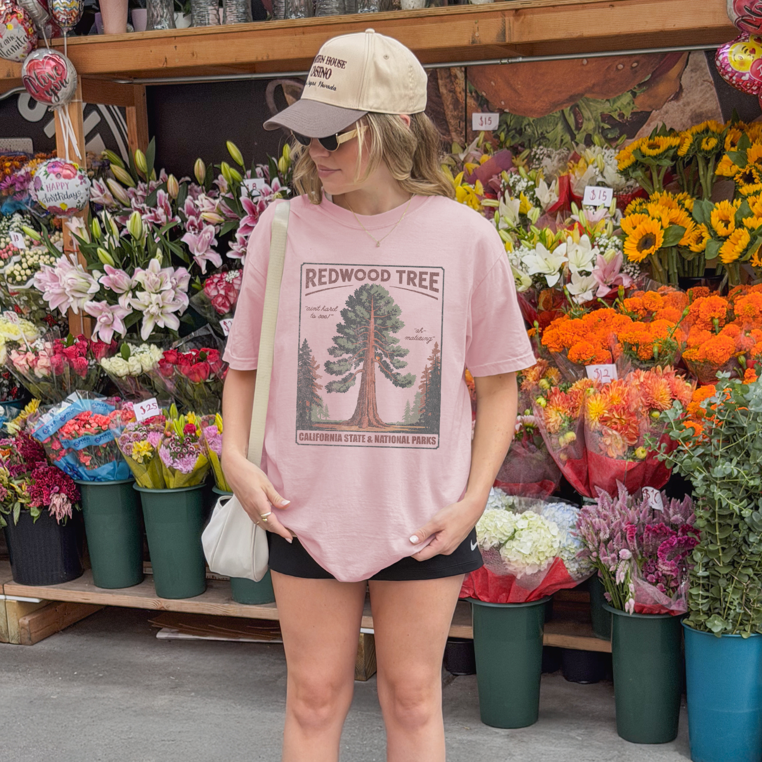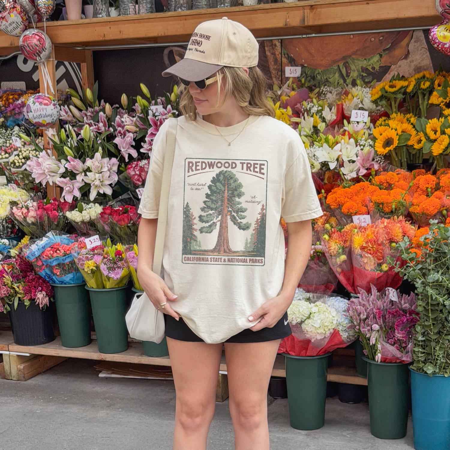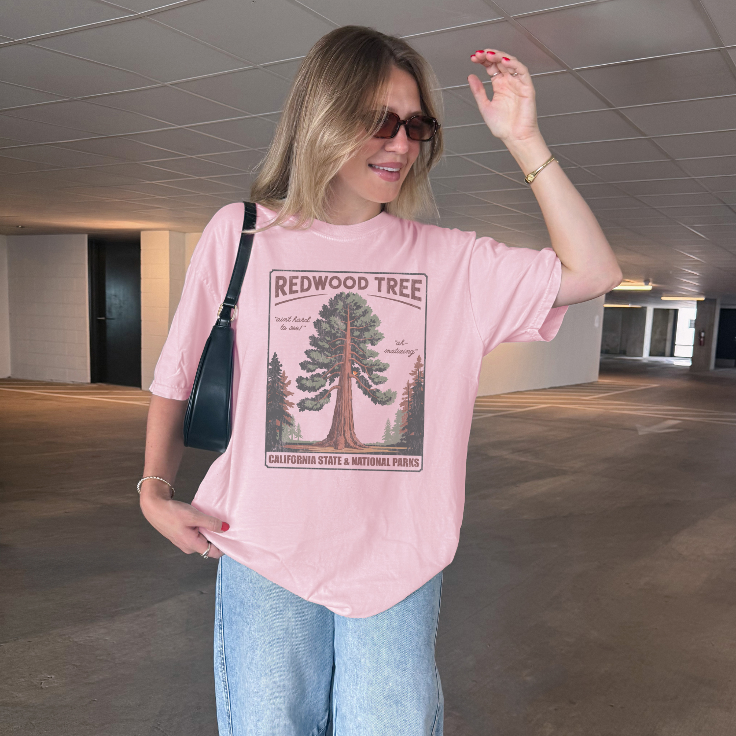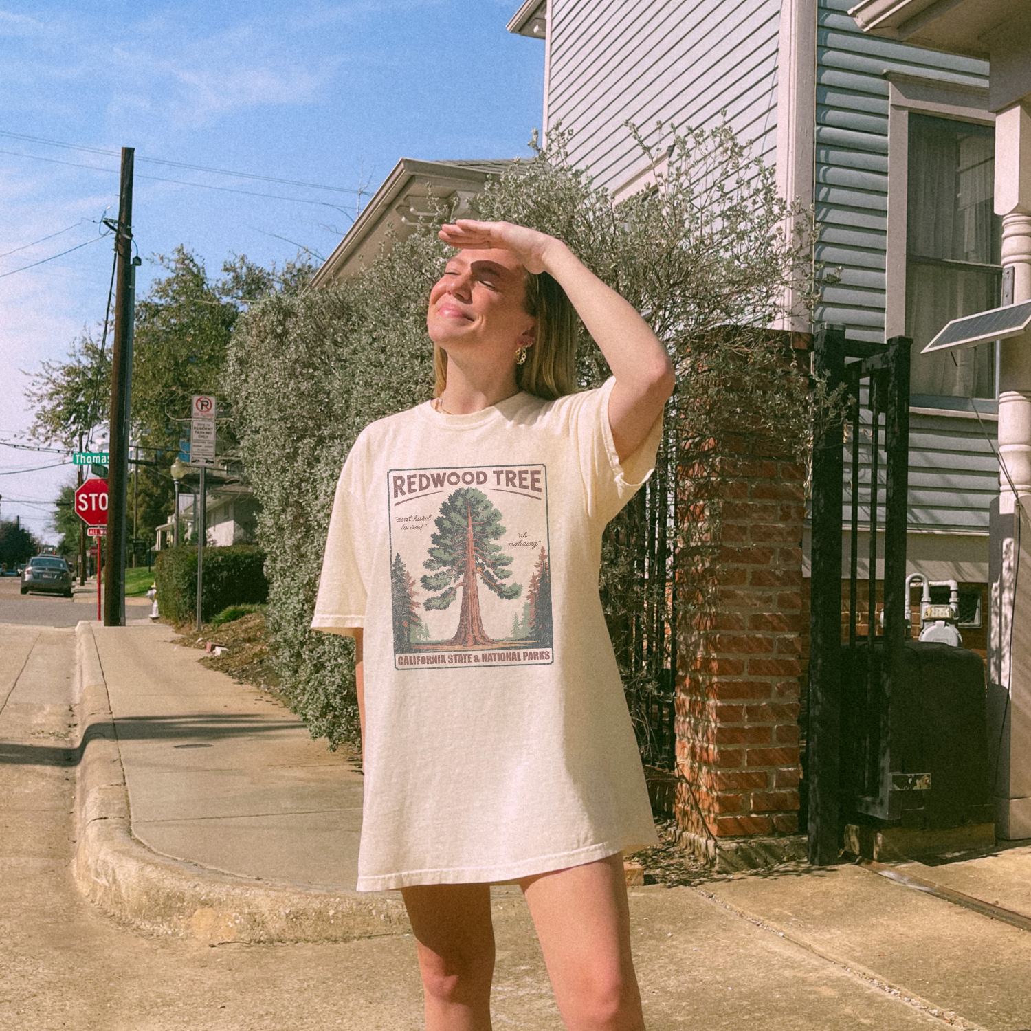 Our Redwood Tree Tee is a vintage-inspired nod to California’s giants — and maybe, just maybe, to a certain lyric that lives rent-free in the minds of Swifties everywhere. With warm earthy tones, hand-drawn lettering that reads “Ah-Matized” and “Ain’t Hard to See,” and a design straight out of a mid-century park poster, this t-shirt walks the line between classic nature lover and inside-joke connoisseur.